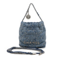 シャネル22 ミニ スタッズ チェーンショルダー デニムキャンバス ブルー AS3980